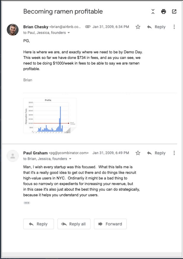 2) Paul Graham screenshot of emails between him and Brian Chesky (Airbnb founder) in 2009